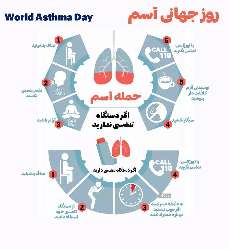 کارهایی که باید در زمان حمله آسم انجام دهید را در اینفوگرافیک زیر ببینید.